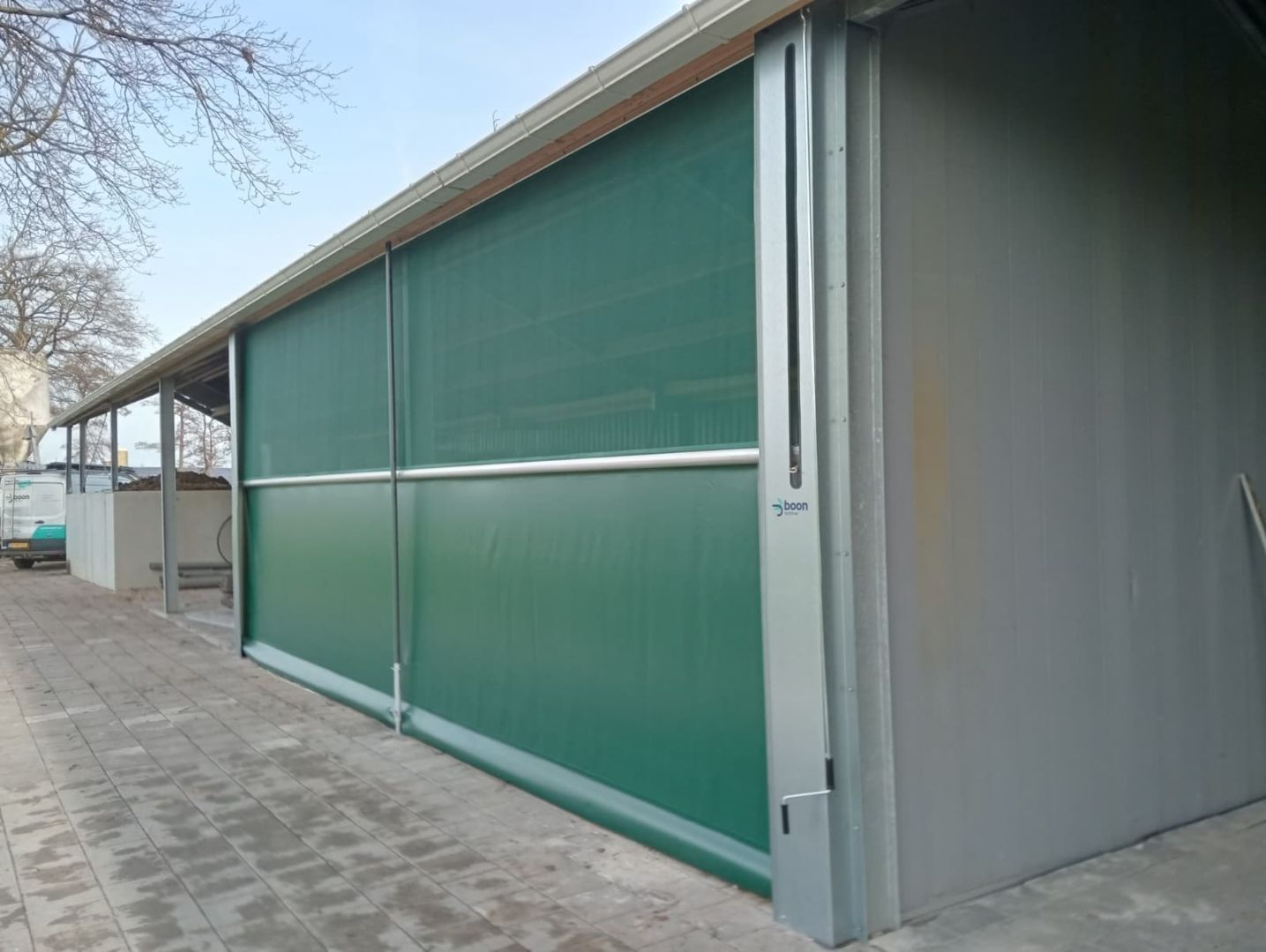 Bij een loods in Barneveld hebben onze monteurs het middenbuis systeem gemonteert. Ideaal is dat het systeem op meerdere manieren open gerold kan worden en ook de loods goed kan afsluiten.